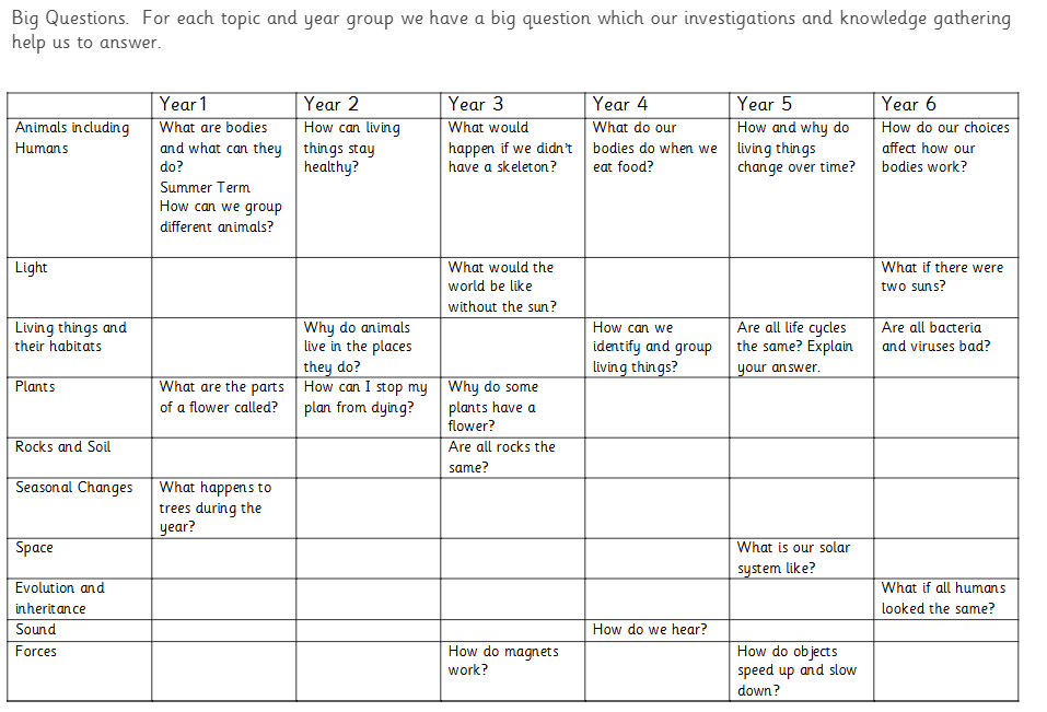 At Rise Park, we aim for the children to develop a sense of awe and wonder about themselves, the world around them and beyond, through questioning and investigations and using appropriate scientific vocabulary to describe their discoveries. In order to achieve this, we follow The National Curriculum for England and Wales.
