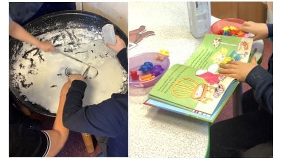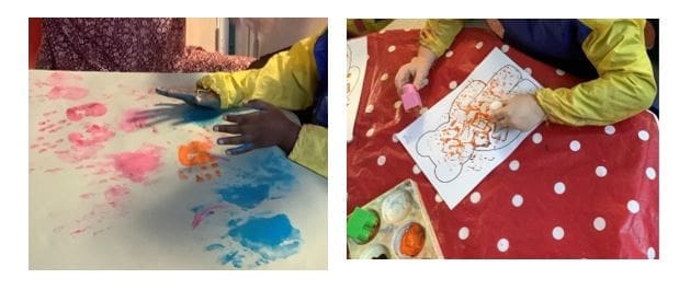 Each day we take part in a variety of activities including both adult-guided and child-led learning. We have opportunities to experience music and movement, books and stories, mark-making, arts and crafts and many other things.