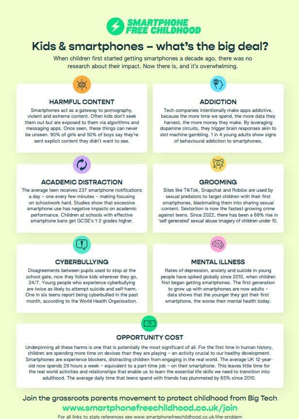 As an organisation, Smartphone Free Childhood also applies pressure to government and ‘big tech’ companies to behave more responsibly in safeguarding children.