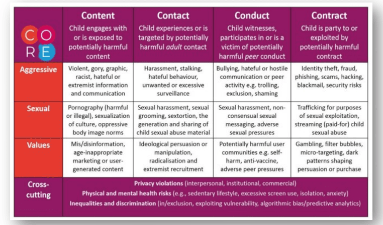 The 4Cs of Online Safety can have a wide ranging impact on children, as shown in the below diagram: