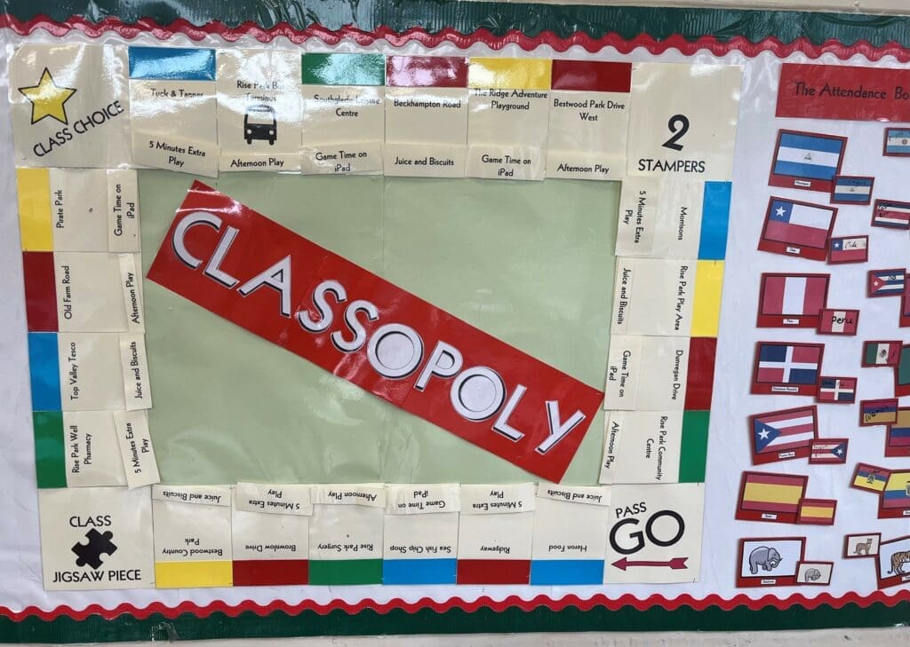 If each class get 97% attendance or more each week, then they get a turn at ‘Classopoly.’ This is announced in Friday’s celebration assembly and is a game where they get a roll of the dice and can move that many squares along the board. Whatever square they land on depends on the prize that they receive. For example, extra break time, juice and biscuits and iPad time. This is a whole class effort where the children work together to improve their attendance and ensure that they are not missing out on any learning throughout the week. The class with the highest attendance also wins the class trophy for the week, this is a highly coveted prize!